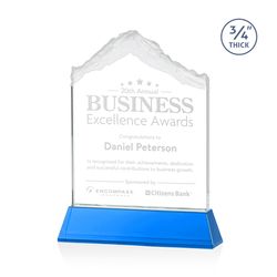 The highest mountain in the world, soaring above the clouds, the incredible Everest Award is a stunning Starfire crystal monument with a deep carved peak appearing above your inspirational words of accomplishment. This epic award is perfect for recognizing an exceptional performance or monumental achievement. Mounted on your choice of clear or colored tall tapered Optical Crystal base. Second position etch on base optional.